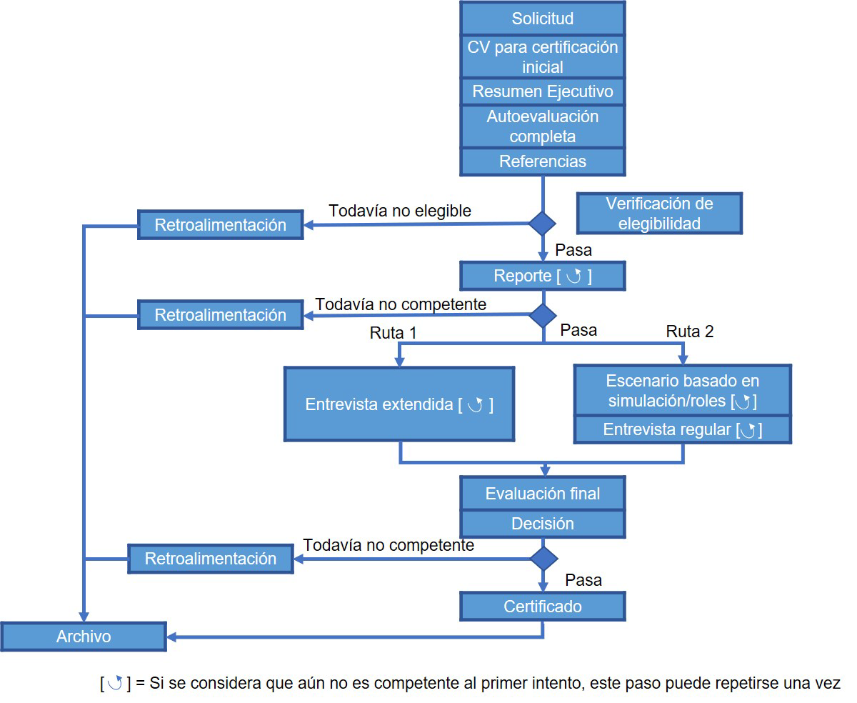 - Solicitud de admisión al proceso de certificación y nivel solicitado, solicitud, currículum vitae, autoevaluación y plan de carrera y comprobante de pago.