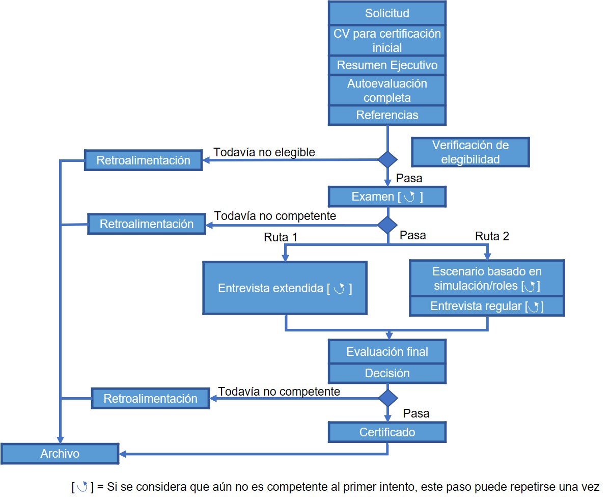 - Solicitud de admisión al proceso de certificación y nivel solicitado, solicitud, currículum vitae, autoevaluación y plan de carrera y comprobante de pago.
